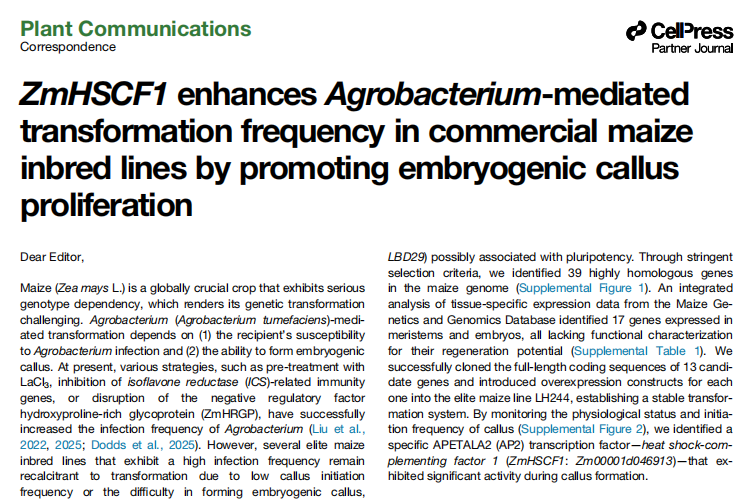 Corn, as one of the world’s three major staple crops, is of crucial importance in the development of genetic transformation technologies, which are directly tied to national food security. However, a long-standing challenge in the industry—the severe “genotype dependence”—has acted as a barrier, hindering the direct incorporation of superior genes into most commercial corn varieties.