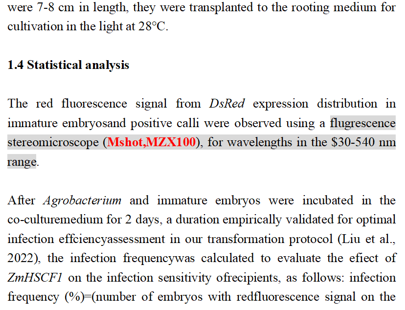 Quantitative Analysis: The research team further utilized the images captured by MZX100 to precisely quantify the fluorescence area. The data revealed that the proliferation rate of positive callus tissue increased an astonishing 21.64-fold after overexpressing ZmHSCF1. This key data was derived from comparing the fluorescence area growth on day 7 and day 14, providing clear evidence that ZmHSCF1 dramatically accelerated the proliferation of positive callus tissue.